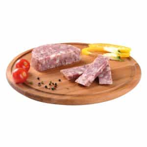 We professionally cut, beautifully laid out and securely packed the delicious sausage on an industrial scale. An attractive format – exclusive packaging in the form of a serving plate is very convenient, opens easily, looks beautiful. At off-site events, you can beautifully set the table without taking it out of the packaging, at home you can easily transfer it to a beautiful dish, decorate with olives or cheese cubes – exquisite, delicious and simple.