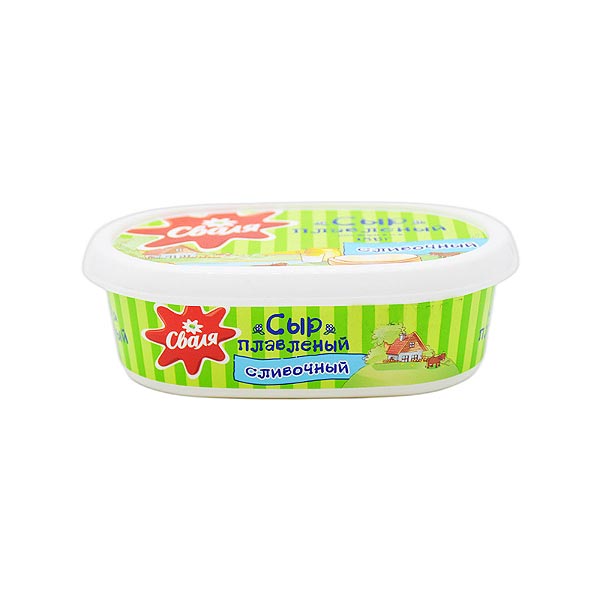 Processed cheese “Creamy”. This natural processed cheese, produced using traditional technology from high-quality ingredients, has a delicate spreadable consistency and is ideal for making sandwiches and snacks. It contains rennet cheeses and cream, which makes the taste of the cheese rich, intense and truly creamy.
