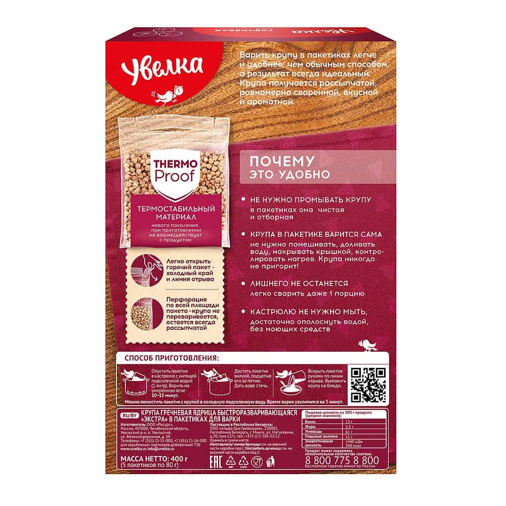 UVELKA, Buckwheat “Extra”, in sachet, 400g (5 sachets of 80g each). (Best before 01/10/2026)